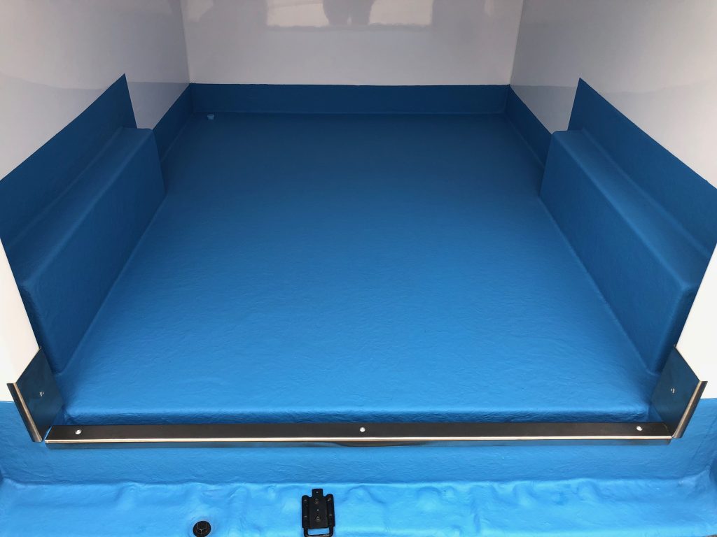 - Piso y zócalo en aluminio.