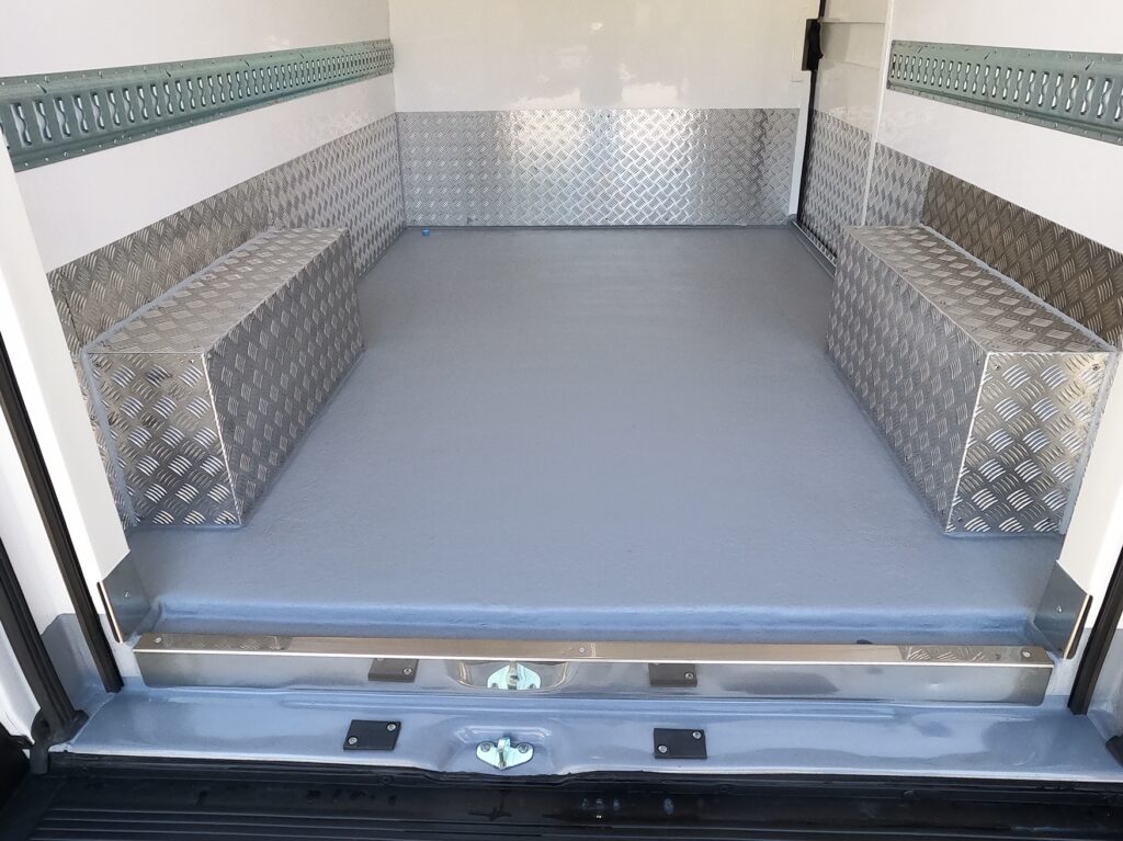 - Piso y zócalo en aluminio.